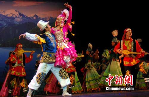 中新網(wǎng)烏魯木齊9月21日電(孫亭文 吳卓雅)上海世博會(huì)將于9月26日至30迎來(lái)新疆周。21日,世博會(huì)新疆周開(kāi)幕式文藝演出節(jié)目在烏魯木齊進(jìn)行“彩排”,素有“歌舞之鄉(xiāng)”之稱(chēng)的新疆,民族歌舞進(jìn)世博自是首選節(jié)目。