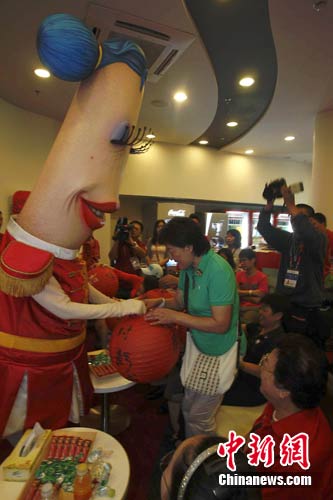 館內“可口可樂快樂工坊”的明星人物“喇叭姐姐”親自向6組網友家庭贈送了由一名殘障書法愛好者親手繪制的中秋紙燈籠,每個燈籠上都提有一句古典詩詞。