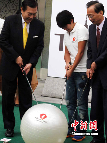 10月14日,世博臺灣館迎來第66萬名參觀者,高爾夫天后曾雅妮受邀擔任該館一日館長,與臺北世貿中心董事長王志剛一起為臺灣館“推桿”祝福。