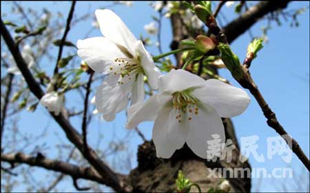 櫻花:與往年相比,今年上海櫻花的花期足足提早一周。在上海植物園櫻花林中,已有一些櫻花樹上綻開了花朵。植物專家預計,3月24日起櫻花將進入初花期。