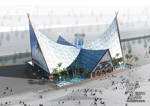 占地面積3000平方米的馬來西亞館,將采用可循環(huán)利用的油棕、塑膠等材料建筑而成,重點展現(xiàn)馬來西亞的獨特風情和團結的民族精神。展館的設計靈感源自馬來西亞傳統(tǒng)建筑。整個建筑由兩個高高翹起的坡屋頂組成,線條優(yōu)美而極具動感,屋頂尖端的交叉構架是馬來西亞本土建筑的一個符號。