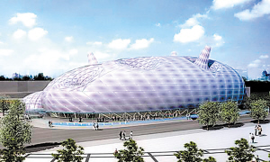 除了能夠提供能量,紫蠶島的外衣也能在炎炎夏日給自己降溫。據介紹,連接小氣枕之間的金屬扣件上設置了許多小噴頭,天氣炎熱的時候可以對氣枕持續噴灑,形成一層流動的水膜,在帶走熱量的同時還使外衣表面一塵不染,時刻晶瑩剔透。紫蠶島的外衣雖然擔負的功能強大,但是它卻一點也不臃腫沉重。“紫蠶島使用的膜和奧運場館水立方使用的是同一種,這種膜結構還能有效減輕建筑物總重量。”設計師介紹說。