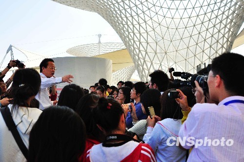 2月24日,上海世博會事務協(xié)調局透露,已有近萬名中外記者報名采訪上海世博會,其中境內媒體報名逾8000人。自去年12月18日上海世博會媒體報名注冊工作啟動以來,境內外媒體采訪報道上海世博會的意愿強烈,紛紛致電致函世博局詢問有關報名事宜。圖為2009年10月,150名世博注冊大學生記者候選人實地采訪建設中的世博園區(qū),角逐100個正式注冊記者的名額。中新社發(fā) 沈春琛 攝