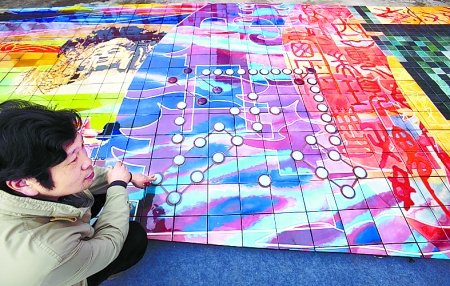 3月29日上午,在三彩藝窯廠,記者看到,工作人員正在對一塊塊壁畫進行最后的清掃、粘貼。郭愛和介紹,這幅壁畫長26米、高3.2米,整幅壁畫緊扣世博會中國河南館“中國之中,城市之源,文明之根,中原崛起”的主題,用洛陽三彩作為畫面主體背景色調,將河南的歷史和未來通過白描、寫意、油畫等各種畫種體現出來,是“城市,讓生活更美好”這一世博會主題的最好體現。