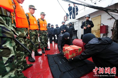 中新網(wǎng)舟山4月27日電(記者 趙曄嬌 通訊員 包能偉)昨天下午2時(shí),浙江省舟山市定海區(qū)公安、海事、港航、海洋與漁業(yè)、邊防等多部門(mén)聯(lián)合舉行“清海”世博安保聯(lián)合演練。本次模擬警情為一名在定海農(nóng)村宕口做爆破員的犯罪嫌疑人,私自截留了10公斤炸藥,企圖帶往上海金山幫助一不符合爆破條件的工地進(jìn)行爆破作業(yè)。
