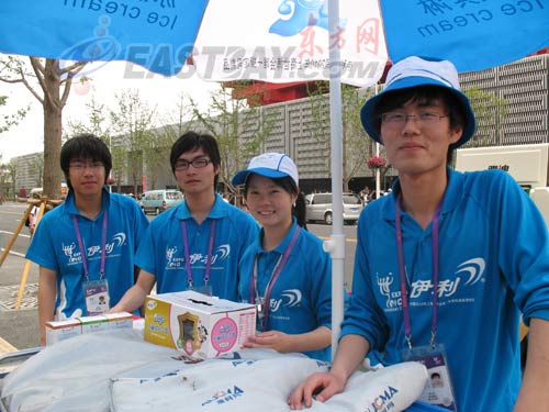 記者發(fā)現(xiàn),在中國(guó)館面向世博軸的出口處有個(gè)冷飲銷售點(diǎn),那里的四名營(yíng)業(yè)員卻很清閑。