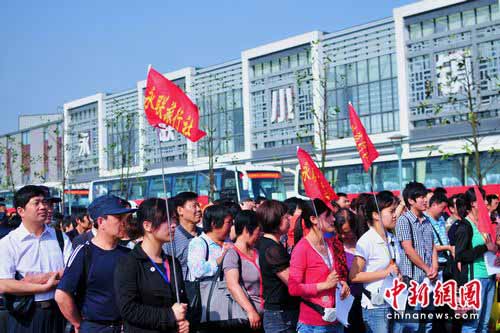 中新網張家港5月25日電(李克祥)“放眼看世界,享受新生活。”今天清晨,以此為主題的“萬人游世博”在張家港永聯村正式啟動,由350名村民職工代表組成的首發團,登上開往上海世博園區的“幸福”大巴,實現不出國門的“出國”開眼界之旅。