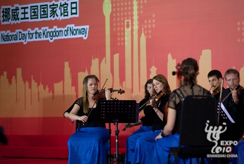 儀式上,特隆赫姆獨奏家樂團帶來了精彩表演。據悉,在今晚的挪威館日文藝演出中,音樂大師譚盾將與挪威少女小提琴獨奏家Hemsing、特隆赫姆獨奏家樂團及特隆赫姆交響樂團合作,帶來譚盾全新創作的小提琴協奏曲《愛的三次方》的中國首演,這部音樂作品融合了搖滾嘻哈與京劇,但又具有古典音樂的形式。同時,“神秘園”也將參與今晚的文藝演出,屆時觀眾將聆聽到《大自然的賦予》的優美旋律,這是由神秘園的靈魂人物、作曲家羅爾夫·勞弗蘭(Rolf Lvland)為挪威館特別創作的管弦組曲,長約15分鐘。
