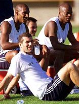 如果說四年前的世界杯得主法國隊靠水泄不通的防守奪得世界杯,本身還有缺點的話,那么就是他們的鋒線還有一些問題。不過,現在這個問題隨著亨利、特雷澤蓋以及阿內爾卡的成熟,已經得到了很好的解決。可以說,現在的法國隊已經接近完美。在中場,攻擊型中場齊達內和防守型中場維埃拉構筑的"鋼腰",以及由德塞利、圖拉姆和利扎拉祖聯手的"鐵壁"則能充分顯示出法國隊的真正價值。正是這"力"與"巧"的諧調為沒有間歇的攻擊、攻守兼備的高壓足球以及絲絲相扣的組織能力提供了可能性。