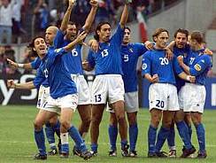 上次藍衣軍團奪下大力神杯已是20年前的事情,那是"金童"羅西的時代。近幾屆世界杯以來,"藍衣軍團"意大利隊每次都是滿懷希望而來,不過羅馬城內的教皇卻似乎并沒有給自己的鄰居帶來好運。他們在1994年的世界杯上點球輸給巴西,在1998年的世界杯上進四強的比賽中又悲劇重演,點球敗給了法國隊,每次都是遺憾的空手而歸。