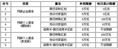 中行“超級網銀”業務限額
