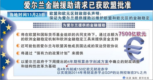 半年前,希臘因為債券市場融資無力瀕臨破產,不得不向歐盟和IMF求援,最終獲得1100億歐元貸款度過危機。債券市場的恐慌極具傳染性。愛爾蘭債券收益大幅上漲可能削弱市場信心,進而推高歐元區其他國家市場融資的成本、將債務沉重的弱小經濟體逼向破產邊緣。隨著愛爾蘭國債收益率上升,葡萄牙、西班牙和意大利等國的國債收益率都有不同程度上揚。剛剛度過破產危機的希臘經濟增長緩慢,隨著所獲貸款接近2013年償還期限,隨時可能重入債券市場融資并再次碰壁。債券市場的異動令歐盟和IMF警覺,歐洲理事會常任主席赫爾曼·范龍佩甚至用“生存危機”來形容局勢緊迫。