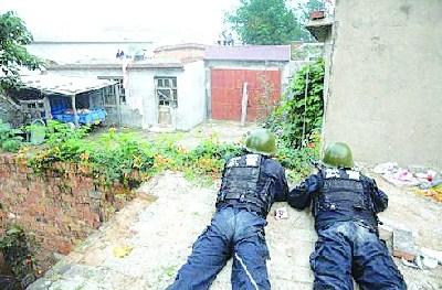 天亮后,警方開始采取行動。經(jīng)對環(huán)境的縝密勘察,在院落的東、東南和西、西南四個方向的制高點分別設(shè)置狙擊點,以武警4名狙擊手為主,采用狙擊步槍和自動步槍封控大院。兩名武警突擊隊員在罪犯藏匿的房頂上,用磚頭砸開玻璃,而后向兩個房間內(nèi)投入4枚催淚彈,逼犯罪嫌疑人出屋。公安刑警7人,利用武警趁黑在院門配房南墻挖開的缺口處進入院內(nèi),迅速前出,實施抓捕。