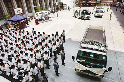 中新網9月19日電 據香港文匯報報道,在菲律賓人質慘劇中遇害的梁家3父女梁錦榮、頌詩及頌儀18日舉殯,全程有500名親友、公眾人士、師生送別。靈柩在移送火葬場前,先到梁錦榮的母校。校園內響起“先短后長”的下課鐘聲,為肅穆的氛圍加添哀愁,標志著3父女人生課堂結束。無比堅強的梁太吳幼媛,按捺不住哀傷情緒,低頭拭淚。梁錦榮哥哥在喪禮結束后,特地叮囑各界忘記悲痛、收拾心情,積極面對未來。出席公祭的市民則認為,事件展露港人人性的光輝,梁家無私的愛更讓人刻骨銘心。