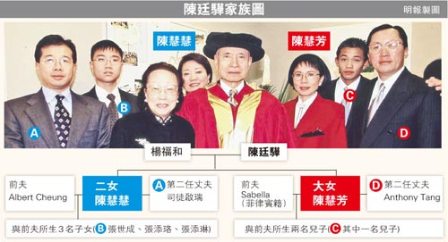 至于其妹陳慧慧,近年已出任南豐集團董事長兼董事總經理,她與前夫所生的3名子女張世成、張?zhí)礴蠛蛷執(zhí)砹站完懤m(xù)加入南豐管理層,在陳廷驊在2008 年退休之后,其家庭勢將接掌整個南豐王國。其母楊福和日前于入稟狀就指出,陳慧慧于2003至2005年曾向父親作出虛假陳述,以致出現(xiàn)家族財產轉移,但當中未有透露具體與哪些財產有關。