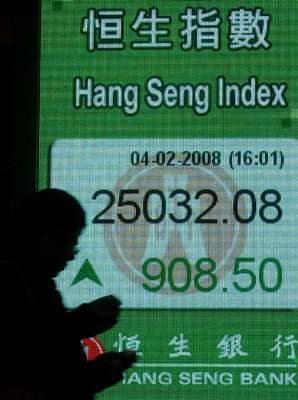 中新網2月5日電 據香港大公報報道,內地雪災稍為舒緩,市場預期中央政府將會投入大量資源進行重建工作,而宏調措施也可能暫時“松綁”,加上環球大型并購活動的憧憬,帶動港股承接上周五升勢再下一城,4日勁升重返25000點關口。分析員建議投資者現階段宜增持現金比重。