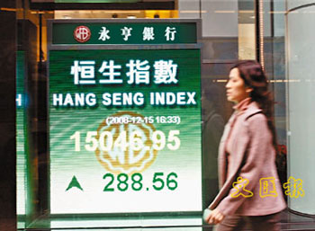 恒指15日一度升628點,收市升幅收窄至288點。(圖片來源:文匯報)