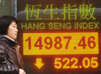 美股回升,令港股7日高開,但恒指瞬即掉頭向下,跌足全日,主要因為美銀減持建行的消息,使一眾中資銀行股被拋售,加上內地3G正式發牌,投資者遂趁高位沽貨離場,令港股失守15000點關口,全日跌522點,收報14987.4點,跌幅3.4%,成交高達900億元,創逾3個月以來新高。即月期指7日報15064點,跌470點,仍高水77點。