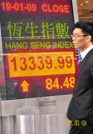 美國假期20日晨休市,港股好淡爭持,美國總統奧巴馬即將宣誓就任原屬利好消息,但匯控繼續疲弱,19日再跌3%,令大市大部分時間疲弱,全日只微升84點,報13339點,成交379.6億元。港股波幅不算大,但走勢反復,恒指先高開后下跌,跌至下午2時半后反彈,最低見過13097點,其后大市由跌轉升,形成“N”形走勢。