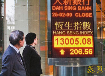 中新網2月26日電 據香港《文匯報》報道,受外圍股市回升帶動,港股高開180點后,最高曾升過約350點,但港府新財政預算案無驚喜,財政司司長一邊宣讀財政預算案,大市升幅一邊收窄,全日收報13005點,升206.56點,升幅1.6%,成交額只有373億元。