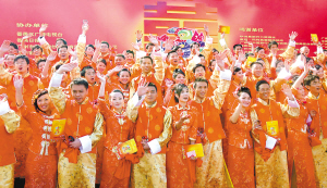 2008年的第一天,79對新人在番禺廣場參加了第十屆番禺青年集體婚禮。在傳統(tǒng)的吹打樂聲中、在一片中國紅的喜慶氣氛里,來自廣州、佛山、深圳等地的青年,還有一對中國和愛爾蘭的跨國情侶,在數(shù)千市民的見證下喜結良緣,正式結為夫妻,攜手走進幸福的人生路。