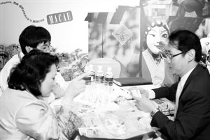 澳門特區政府旅游局分別在臺北及臺中舉行旅游洽談會,為業界提供平臺洽談業務。來自澳門的20多家酒店、旅行社、航空公司、會展業等旅游機構的代表,21日參加了在臺北舉行的洽談會,與當地150位旅行社代表商談合作事宜,吸引更多臺灣居民到澳門旅游。