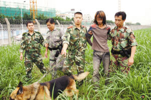 今年5月1日下午3時(shí)30分左右,廣東邊防六支隊(duì)十中隊(duì)警官蘇建飛正在執(zhí)勤,他通過監(jiān)控器嚴(yán)密監(jiān)視著邊防地段上的動(dòng)靜。突然,蘇建飛透過監(jiān)控屏幕發(fā)現(xiàn)4名男子鬼鬼祟祟的進(jìn)入了延芳路邊防地段,他立即通過對講機(jī)命令附近執(zhí)勤哨兵前往查看情況。“站住!干什么的?”哨兵邊跑邊喊道。4名男子見邊防官兵追了過來,慌忙竄入邊界緩沖地帶的香蕉林里。此時(shí),香港打鼓嶺警署在接到廣東邊防六支隊(duì)的信息通報(bào)后,也從深圳邊界警方傳輸過來的視頻信息中發(fā)現(xiàn)了4名男子。最終,在深港邊界警方通力合作下,4名涉嫌非法越界男子全部落網(wǎng)。