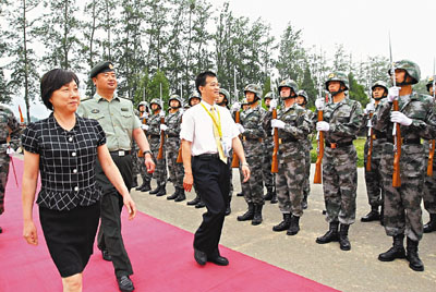 學員早上乘車到解放軍北京衛戍區的軍營參觀,文匯報副社長兼未來之星同學會主席韓力在北京衛戍區警衛三師副師長朱繼明陪同下檢閱軍隊,之后兩人與北京衛戍區警衛三師副參謀長閆慶峰、北京衛戍區警衛三師十一團團長李永奎、北京衛戍區外事處處長王普升等及一眾同學欣賞軍事表演。