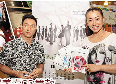 楊威(左)與金晶特別來香港義賣CD。(圖片來源:文匯報)