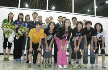 中國女排一行16人3日抵達(dá)澳門國際機(jī)場(chǎng),澳門體育發(fā)展局局長(zhǎng)黃有力及中國澳門排球總會(huì)主席鮑馬壯迎接,主辦單位送上花束,祝愿中國女排在本屆比賽取得好成績(jī)。蔡斌表示,新組成的中國女排仍在磨練中,由于訓(xùn)練時(shí)間尚短,仍有很多地方需要改善,在這次比賽會(huì)以“邊打邊練”的方式,使隊(duì)伍能快速成長(zhǎng)。他并表示會(huì)化壓力為動(dòng)力,全力以赴,打好每一場(chǎng)比賽。