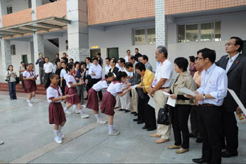這次考察活動由立法會主席曾鈺成率領,首個到訪地點是兩所位于南充市的學校,分別是白塔中學及涪江路小學。