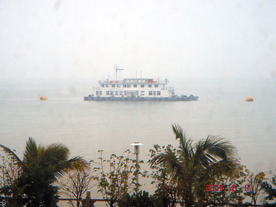 主席臺由鋼架搭建而成,施工現場對面的海域上,還停泊著一艘大船,附近還有2個橘黃色的巨大浮球。據知情人士透露,這都是為即將舉行的動工慶典儀式準備的。