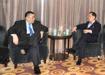 中新網(wǎng)3月4日電 據(jù)香港中通社報道,香港特區(qū)行政長官曾蔭權(quán)及澳門特區(qū)行政長官崔世安3日下午抵達(dá)北京后,兩人共進(jìn)晚餐。曾蔭權(quán)及崔世安將列席5日全國人大會議開幕式。