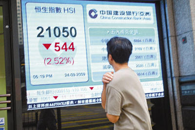 中新網(wǎng)9月25日電 據(jù)香港《文匯報(bào)》報(bào)道,港股24日隨美股疲軟而大跌,一度低見20963點(diǎn),跌幅逾630點(diǎn),內(nèi)地A股下午反彈,但對(duì)港股氣氛并無大幫助,全日收?qǐng)?bào)21050點(diǎn),跌544點(diǎn),成交789.9億元。其中首日上市的中冶金成交高踞榜首,達(dá)69億元。
