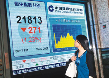 中新網12月16日電 據香港《文匯報》報道,港股經周一反彈后15日再回吐,迪拜世界獲救,對港股的刺激只有一天,恒指15日又遇上大量沽盤,最多跌310點,全日收報21813點,跌271點,成交額687.6億元。恒指再次失守50天線,期指也低水60點,技術走勢進一步轉差。
