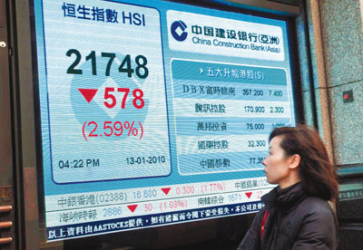 人民銀行周二晚出其不意宣布上調銀行存款準備金率50個基點,凍結近3000億元人民幣資金,市場擔憂內地收緊銀根措施陸續有來,拖累亞太區主要股市急挫。市場12日晚普遍預期13日港股會跌約300至400點,結果跌幅更超預期。恒指低開336點,午后跌幅擴大,最多跌638點,收市報21748.6點,跌578點,跌幅達2.6%。