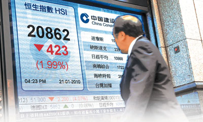 中新網(wǎng)1月22日電 據(jù)香港《文匯報》報道,內(nèi)地去年超額完成“保八”目標,12月居民消費價格指數(shù)(CPI)漲幅更大升至1.9%,超出市場預期,投資者擔心內(nèi)地將提早加息,并加快退市步伐,加上隔夜美股疲弱、希臘財政問題或擴散至葡萄牙令美元急升,資金撤港匯弱,種種因素令港股21日再大跌423點或2%,失守21000點,大市兩天共瀉815點。
