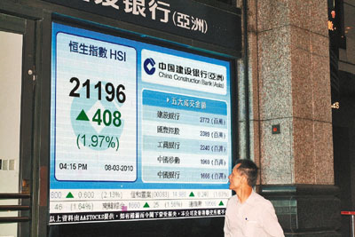 中新網3月9日電 據香港《文匯報》報道,美國就業數據理想,加上法國表示會支持希臘,紓緩歐洲債務危機,亞太區股市普遍造好,港股8日也跟隨上升,最多曾升469點至最高的21257點,收市報21196.8點,升408.9點,不單收復21000點大關,更一舉升穿50天線,創6周收市新高,升幅達2%,但成交額只有650億元。