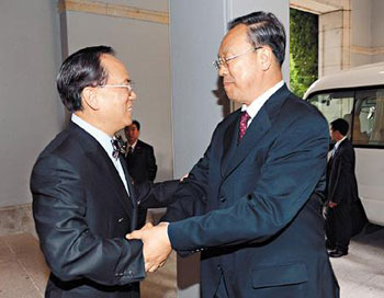 中新網7月29日電 據香港《星島日報》報道,杜青林出任統戰部部長后28日首次訪港,并于28日傍晚在禮賓府與香港特首曾蔭權進行首次禮節性會晤。多位政界人士指出,杜青林訪港顯示中央有意加強香港在兩岸交流的角色。