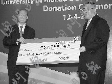 澳門社會知名人士何鴻燊、曹其真,以及呂志和基金有限公司、澳門霍英東基金會分別向澳大發展基金會捐款3000萬澳門元,款項將作為基金會的永久性基金,由基金會管理,并僅作支持澳大發展之用。除前立法會主席曹其真親自捐贈外,澳門博彩股份有限公司董事蘇樹輝代表何鴻燊,呂志和之子呂耀東代表呂志和基金有限公司,澳門霍英東基金會主席霍震寰代表該基金會向澳大捐贈有關款項。