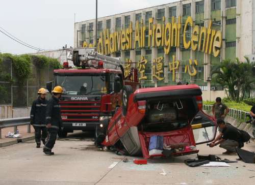 中新網6月22日電 據香港《大公報》報道,香港九龍城21日上午發生出租車翻車意外,肇事司機駛至宋王臺時,報稱閃避流浪狗而失控撞向路旁石壆,反彈出路面時四輪朝天。