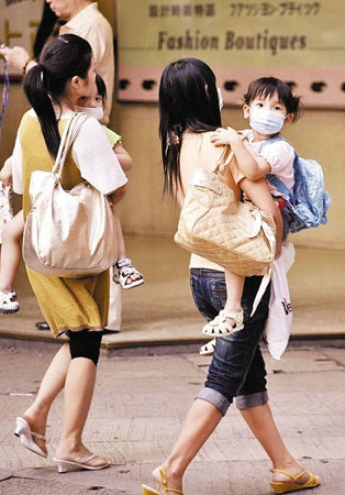 外傭和小雇主做足防流感措施。(圖片來源:文匯報)