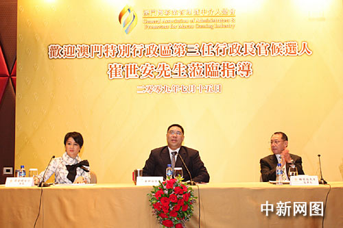 中新網7月16日電 第三任澳門特區行政長官候選人崔世安昨日與博彩管理暨中介人總會座談。