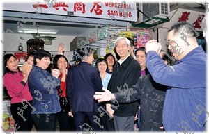 崔世安巡區(qū),傳媒蜂擁而至,所到之處無(wú)不吸引居民圍觀。不少居民隔住人群高喊自己的訴求,希望崔世安解決就業(yè)問(wèn)題,繼續(xù)“派錢(qián)”解困。不少商鋪?zhàn)鲎銣?zhǔn)備,崔世安與負(fù)責(zé)人、職員互相拜年問(wèn)好,不時(shí)詢(xún)問(wèn)經(jīng)營(yíng)情況。在探訪關(guān)閘一藥房時(shí),還特別詢(xún)問(wèn)藥劑師在什么地方畢業(yè),藥房生意好嗎?