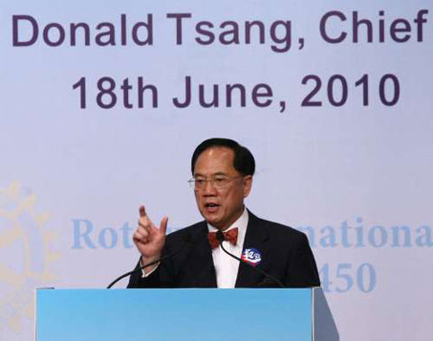 中新網6月19日電 據香港《文匯報》報道,香港政改方案最快4日后在立法會表決。行政長官曾蔭權重申,政改方案目前仍欠數票才能通過,他會盡力爭取議員支持,直至最后一分一秒。他說,普選不會忽然“從天而降”,議員否決方案會令政制原地踏步及社會繼續內耗,通過方案則政制可向前發展及建立互信,一切取決于議員的“一念之間”。