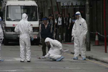 中新網5月21日電 香港《大公報》今日在“要聞”欄目刊發報道稱,香港警方20日凌晨出動近百人到旺角“鏹水彈”現場重組案情,初步鎖定兩幢商廈為犯案地點,探員先后從不同樓層試擲20瓶液體下街,包括裝有腐蝕液的鏹水彈,由化驗師收集濺射數據加以分析,期能尋找線索幫助破案。