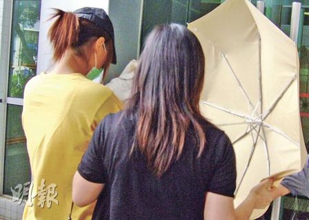 案發時當援交少女的被告(左)由社工(右)陪同,24日以一身樸素打扮出庭。(圖片來源:明報)