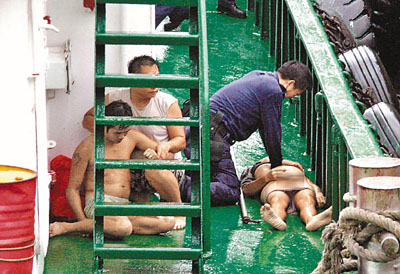 三父子急穿上救生衣,但未及棄船即隨船沉,三人雖懂水性,但被困船艙,經一番掙扎才陸續浮上水面,其中父親已遇溺昏迷。由于沉船位置與拖船之間有一段距離,三父子在驚濤駭浪下拚命掙扎游向拖船,期間不時被海浪卷入海中沒頂。