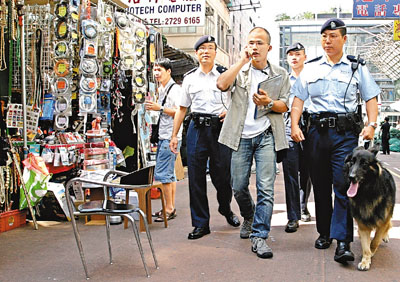中新網11月2日電 據香港《文匯報》報道,香港深水埗鴨寮街日前發生高空投擲腐蝕性液體案引起社會關注。警方1日連續第3天到鴨寮街搜證,并在高空監察可疑人物。