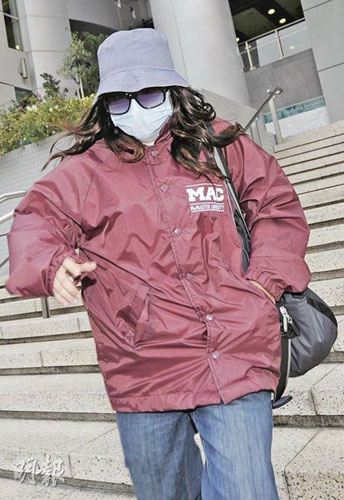 應訊后被告隨即躲進法院傷殘人士廁格7小時,其間數名記者一直在外守候,被告放棄出外午膳。至下午5時許,女被告“改頭換面”,戴著深棕色長曲假發,改穿棗紅色風褸、牛仔褲及波鞋,并戴上漁夫帽、墨鏡及口罩,箭步沖出法院。一名親友到場接應,兩人跳上的士后,親友向在場記者舉起不文明手勢,的士其后絕塵離去。